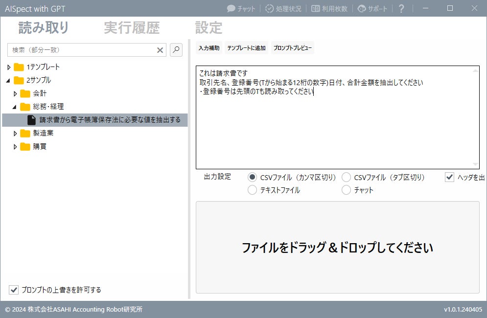 株式会社 ASAHI Accounting Robot 研究所(所在地:山形県山形市、代表取締役:田牧大祐)は、AI OCRサービス「AISpect」に生成AI機能を追加した「Generative AISpect」(以下GAIS)を2024年4月15日にリリースいたします。GAISは、プロンプトによって抽出項目の指示ができるため、定型、準定型、非定型ほぼ全てのレイアウトに対して効果を発揮できます。また生成AIの特長を活かし、値があっているかの項目のチェックや再計算を行う、さらには読み取った文章を要約する、といったことも可能で、これまでのOCRとは一線を画したサービスとなりました。